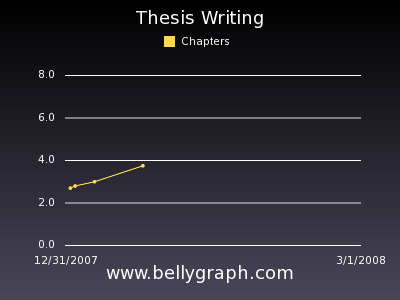 happy new year to y'all! as with new year tradition, i took stock... of the thesis. it has come to my attention that there is only 2 months to go until i am to submit my thesis. in the hopes of attaining my goal, i have procrastinated a little (cmon cmon, hear me out first), and produced a graph of my progress to date courtesy of bellygraph.com (pretty aint she?). it will appear on the left as this moment nears.